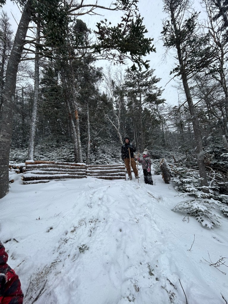 Over the past few weeks, my brother and I have been making a campsite in the woods behind my house. It’s been pretty fun! In order to get there, we have to do a short hike, about 500 meters on a gradual incline through a cut trail. Then just before the site itself, you have to go up a steep slope to the spot. The camp area now has multiple wind-break walls, made of logs stacked about 4 ft high, a small fire pit surrounded by rocks for fires and cooking; and the last bit is a long log for sitting on (eventually this will be cut up and made into two-person size benches). Prior to this, there were wind-falls everywhere (trees that had fallen down), new growth scattered throughout, and lots of branches everywhere.